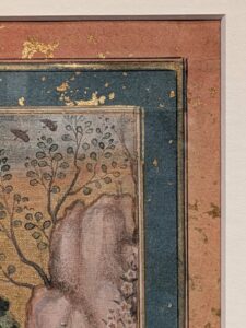 Although there was no Chinese decorated paper on view, the eyecatcher of the Islamic art auction was a group of extraordinary South Asian paintings from the personal collection of Prince and Princess Sadruddin Aga Khan on sale at Christie’s London. One highlight was a late 16th-century painting depicting a family of cheetahs in a rocky landscape from the early Mughal period. It is attributed to Basawan, a famous painter during Akbar’s reign. The painting was created on a piece of cloth, which is not a typical medium for Mughal paintings, and was further mounted with gold-flecked papers. On the contrary, silk has been extensively used for painting and calligraphy in China and Japan throughout history.