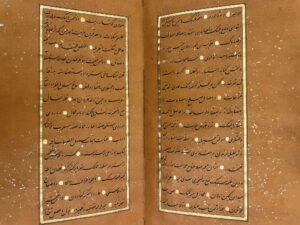 Her days were filled with examining an array of compelling manuscripts. Among the many items she consulted, several stood out: a beautifully prepared Hüsrev ü Şirin, a number of Mecmuas, and various Ottoman Turkish divans adorned with vibrant papers and subtle decorative techniques. Handling these objects allowed her to observe details impossible to capture in digital reproductions—the weight and texture of the folios, the delicate shifts in pigment, the sheen of polished paper, and the nuanced craftsmanship that defined Ottoman book arts. Each manuscript revealed its own visual rhythm, its own material story.